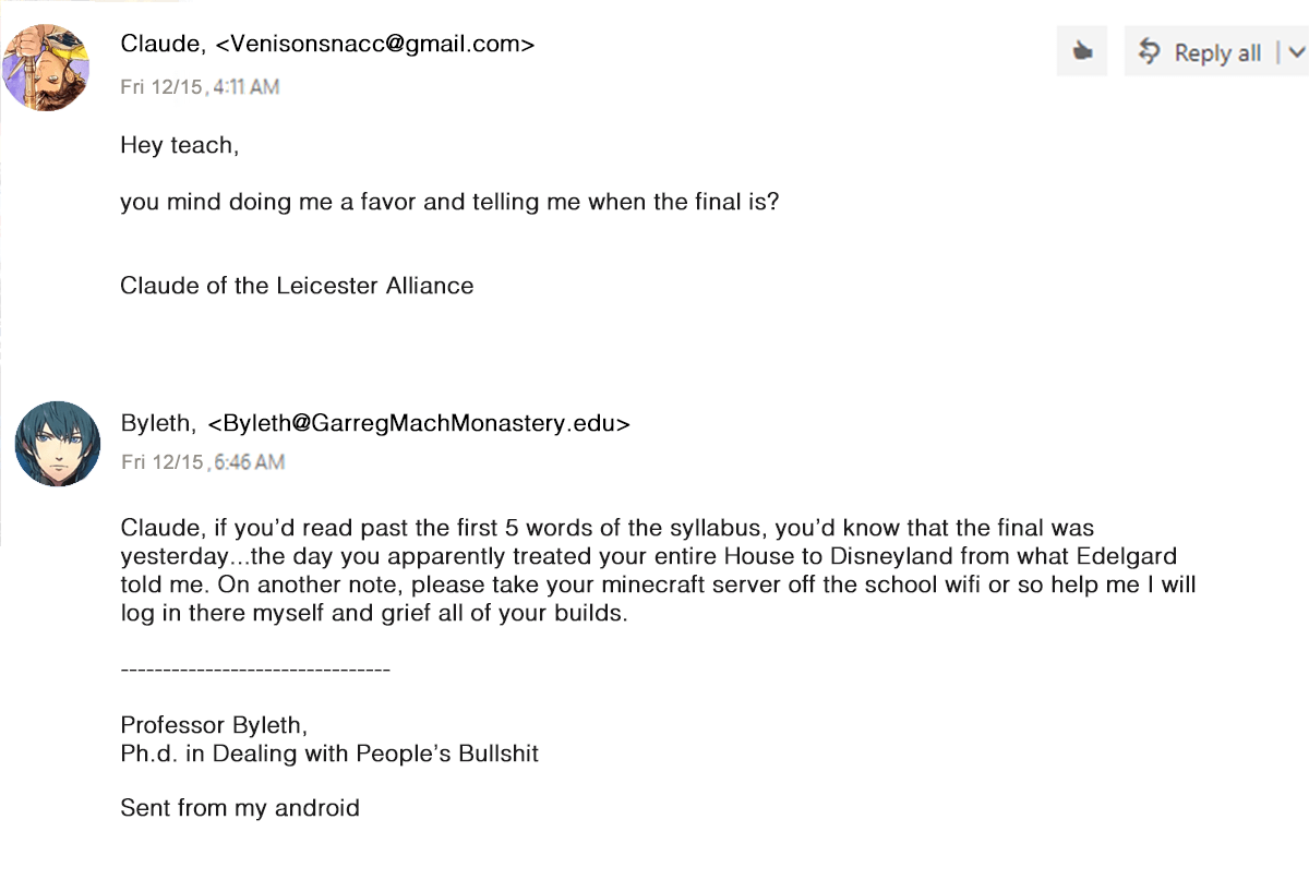 Emailing Professors Meme With Claude This Time Fireemblem